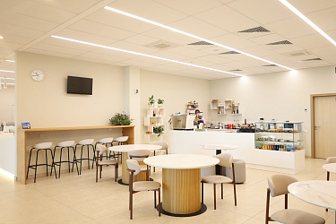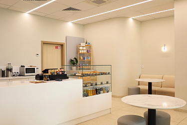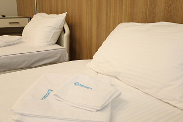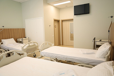 Для размещения предусмотрены 2-х и 3-х местные палаты. Палаты оснащены новой удобной мебелью (кровать, постельное белье предоставляется пациенту), тумбочка для хранения личных вещей, шкаф, телевизор, кнопка вызова персонала), оборудован удобный санузел. Пациенту предоставляется питание в соответствии с профилем заболевания.